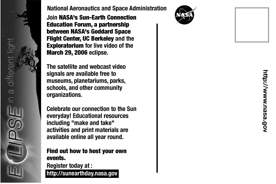 - Need something quick and colorful that also provides key information about Sun-Earth Day? This postcard is just the thing for your events and mailings!